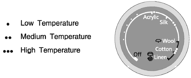 | Temperature Selector Setting | Fabric | Ironing Recommendations |