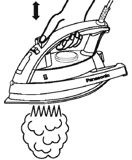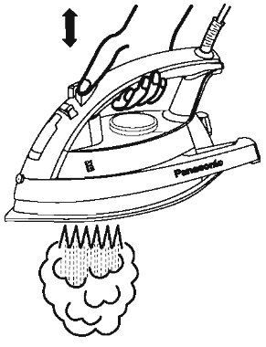 To get better results when using vertical steam, hang the garment on a clothes hanger. Curtairs and drapes may also be steamed once they're hung. Hold the iron away from your body, close to but not touching the fabric. Pull the fabric tight with your free hand and pump the Vertical Steam Button (Jet of Steam Button) at 2-5 seconds intervals as you pass the iron over the wrinkled fabric.