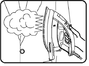 The"Jet of Steam" feature provides extra steam which goes deep into the garment and is helpful for removing stubborn wrinkles. The "Jet of Steam" feature operates properly only in the 'Linen' position of the Temperature Selector Dial when steam or dry ironing ( If used at lower setting, water spotting will occur because the iron is not hot enough to change water to steam ). If you have not used the " Jet of Steam " feature for a long time, it is necessary to clean the inside of the iron before using this feature on any clothes to be ironed. Simply test the " Jet of Steam feature several times away from the ironing board and clothes to be ironed. This will prevent brown spotting or water spotting on the clothes.