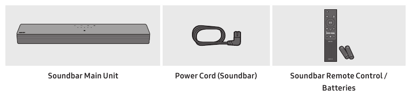 - For more information about the power supply and power consumption, refer to the label attached to the product. (Label: Bottom of the Soundbar Main Unit)