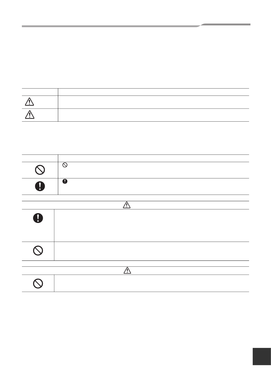 • If an abnormality occurs (burning odour), stop operations, and turn off the circuit breaker.