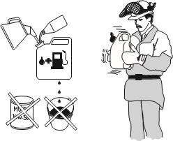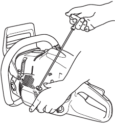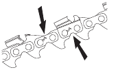 | Check the saw chain with regard to visible cracks in the rivets and links, whether the saw chain is stiff or whether the rivets and links are abnormally worn. Replace if necessary. | Clean or replace the spark arrestor screen on the muffler. | Empty the fuel tank and clean the inside. |