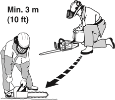 Use caution when handling fuel. Move the chain saw at least 10 feet (3 m) from the fueling point before starting the engine.