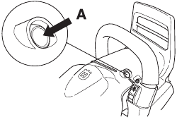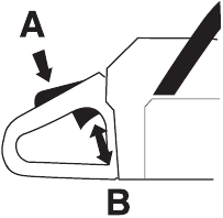 The throttle lockout is designed to prevent accidental operation of the throttle control. When you press the lock (A) (i.e. when you grasp the handle) it releases the throttle control (B). When you release the handle the throttle control and the throttle lockout both move back to their original positions. This arrangement means that the throttle control is automatically locked at the idle setting.