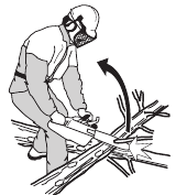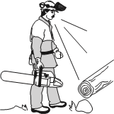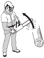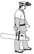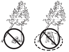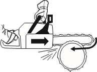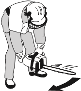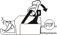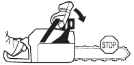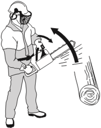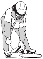 There are also certain positions in which your hand cannot reach the front hand guard to activate the chain brake; for example, when the saw chain is held in felling position.