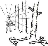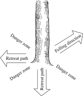Do not start cutting until you have a clear work area, secure footing and a planned retreat path from the falling tree.