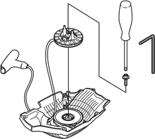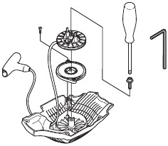 | Check that the components of the throttle control work safely. (Throttle lockout and throttle control.) | Check the starter, starter cord and return spring. | Check the clutch centre, clutch drum and clutch spring for wear. |