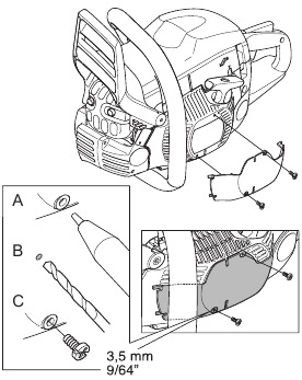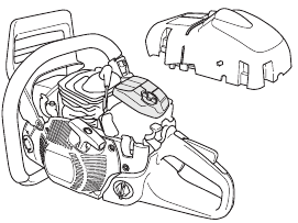 Note! The cooling system on a chain saw with catalytic converter must be cleaned daily. This is particularly important on chain saws with catalytic converters, because the higher exhaust temperature requires efficient cooling of the engine and the catalytic converter unit.