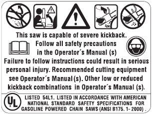 This chain saw is capable of severe kickback that could result in serious injury to the user. Do not operate this chain saw unless you have extraordinary cutting needs and experience and specialized training for dealing with kickback. Chain saws with significantly reduced kickback potential are available.