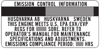 The Emissions Compliance Period referred to on the Emission Compliance label indicates the number of operating hours for which the engine has been shown to meet Federal emissions requirements. Category C = 50 hours, B = 125 hours, and A = 300 hours.