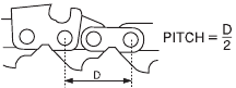 | Length, inch | Pitch, inch | Gauge, inch | Max. nose radius | Type | Drive link count |