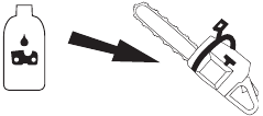 | The bar should be turned daily for more even wear. Check the lubrication hole in the bar, to be sure it is not clogged. Clean the bar groove. If the bar has a sprocket tip, this should be lubricated. | Lubricate the clutch drum bearing. | Clean the outside of the carburetor. |
