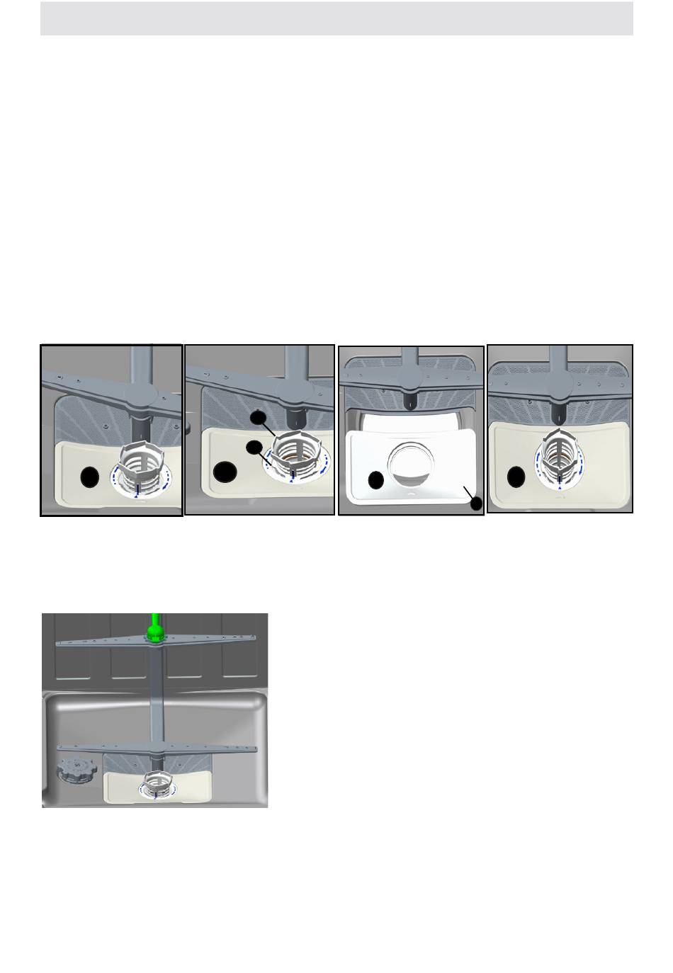 turning the nut to the left. Be sure that the nut is perfectly tightened when refitting the upper spray arm.