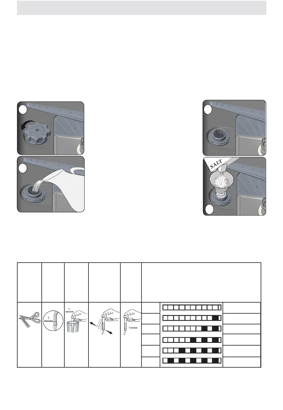 • Add 1 kg salt into the salt compartment and fill with water up to a level at which it will almost overflow.