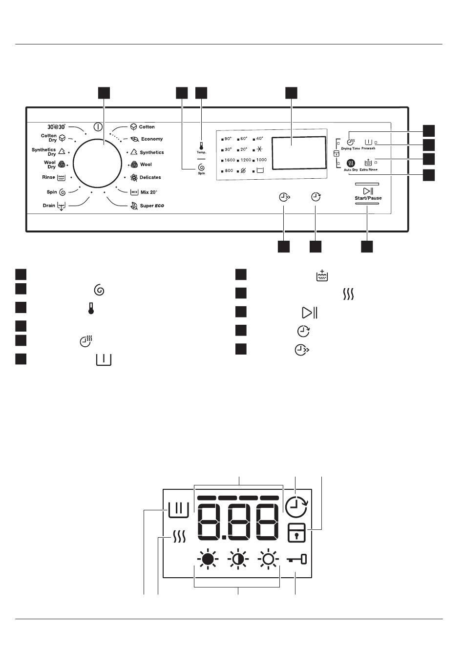 ZWD76SB4PW Control Panel Description