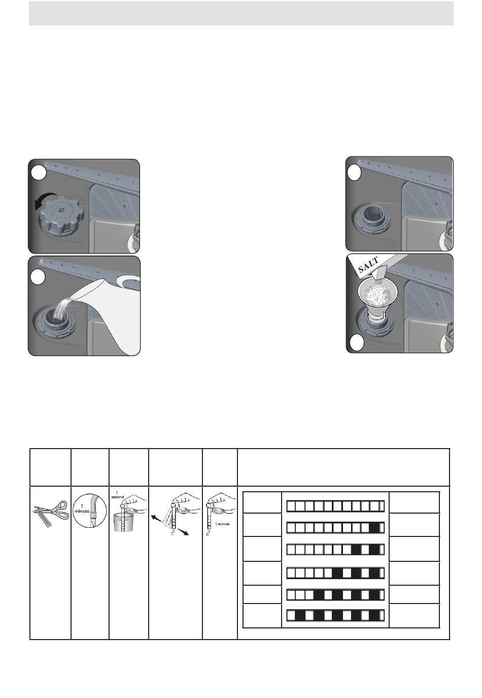 • Add 1 kg salt into the salt compartment and fill with water up to a level at which it will almost overflow.