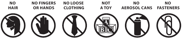 AVOID getting jewelry, hair or loose clothing too close to feed slot as serious injury can occur.