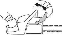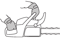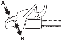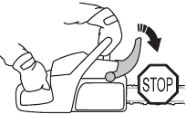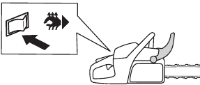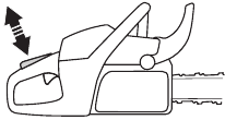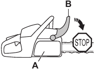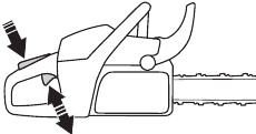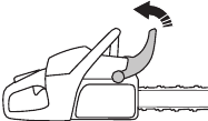![]() | Chain brake, engaged (right). Chain brake, disengaged (left). |