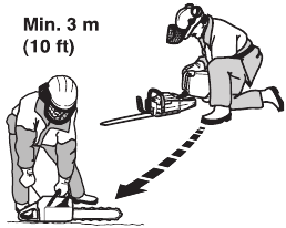 - Long term inhalation of the engine's exhaust fumes, chain oil mist and sawdust can represent a health risk.