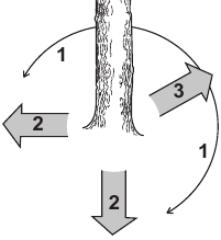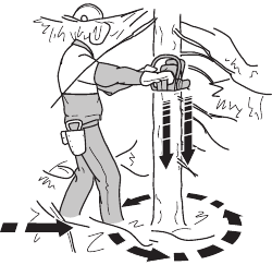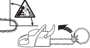 ![]() | Warning! Kickback can occur when the guide bar tip touches an object. A kickback causes a lightning fast reverse reaction that throws the guide bar up and in the direction of the operator. Can cause serious injury. |