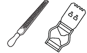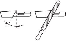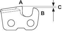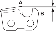 Use a Husqvarna file gauge to sharpen the saw chain. A Husqvarna file gauge makes sure that you get the correct filing angles. The part numbers are given in the table below.