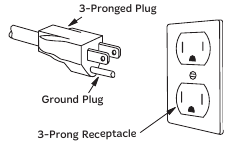 IMPROPER USE OF THE GROUNDING PLUG CAN RESULT IN A RISK OF ELECTRIC SHOCK.