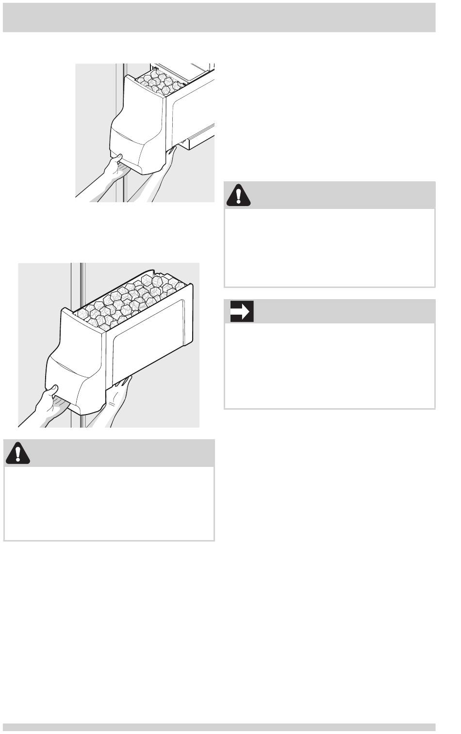 of the ice bin when removing it from the