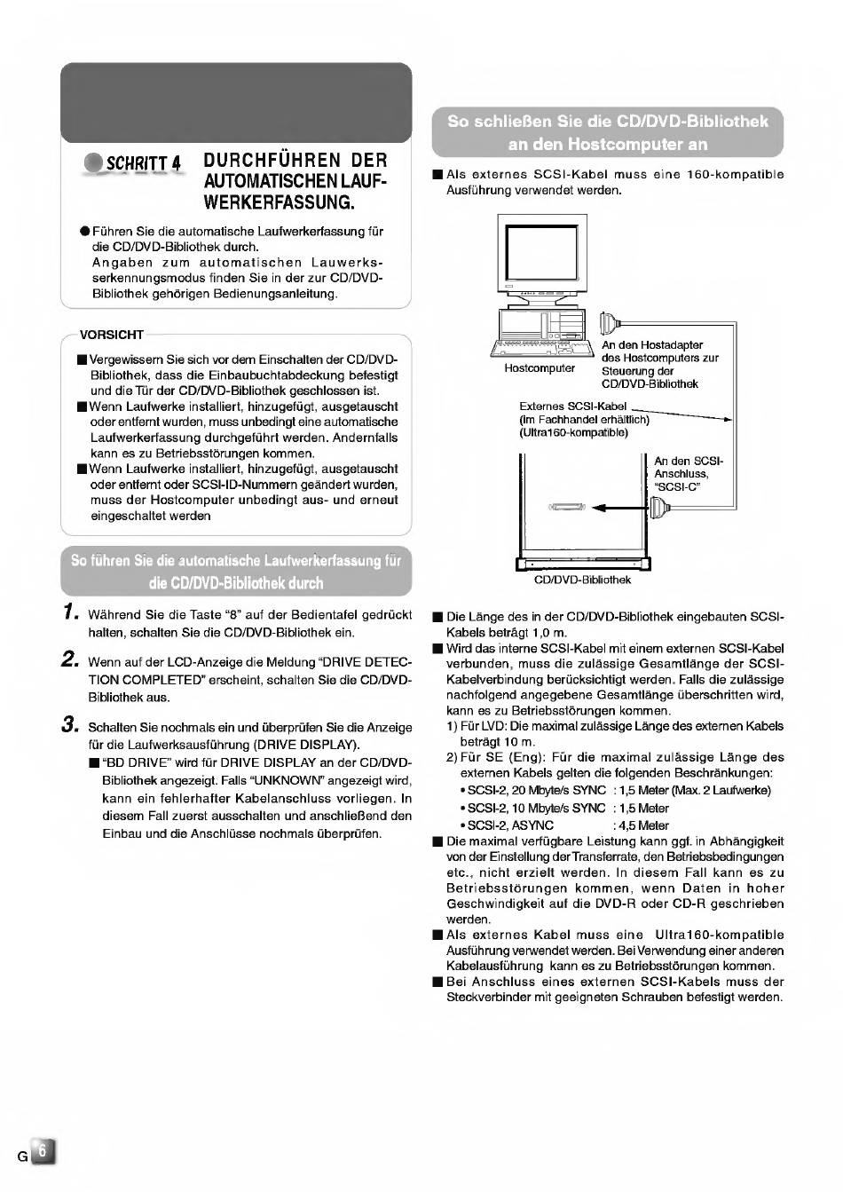 ■ Die Lange des in der CD/DVD-Bibliothek eingebauten SCSI-
