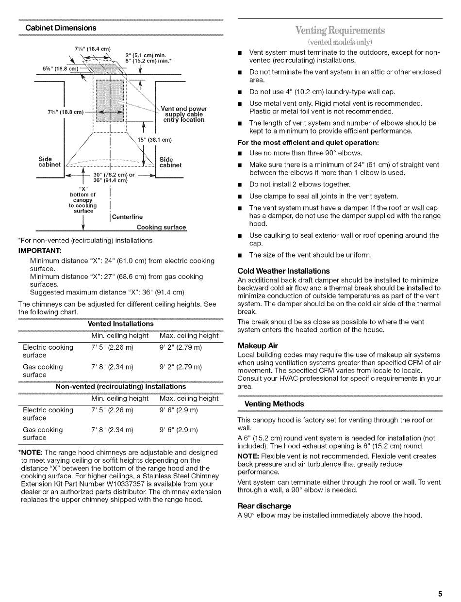 Minimum distance "X": 27" (68.6 cm) from gas cooking