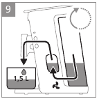 | Water continues to flow from the spout when I use the machine for the first time. | When using the machine for the first time, it performs a flushing cycle. Place a bowl of 1.5 liters under the spout to catch the water from the flushing cycle. Flush the machine before first use. |