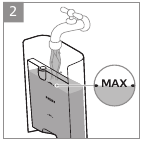- Fill the water tank with fresh water to the MAX level indication.
