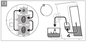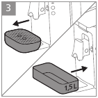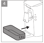 - Fill the water reservoir with fresh water up to the MAX indication and place it back onto the machine.