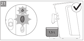 | There is water on the worktop under the appliance. | Do not overfill the water reservoir. Check if the water drops on the worktop are not the result of placing or removing the water reservoir. |