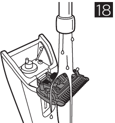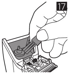 - Clean the hair chamber with the cleaning brush supplied (Fig. 17). You may also rinse the hair chamber under warm running tap water to remove any residual debris.