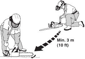 There are also certain positions in which your hand cannot reach the front hand guard to activate the chain brake; for example, when the saw chain is held in felling position.
