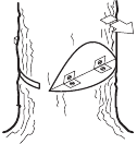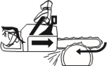 | WARNING! Kickback may occur when the nose or tip of the guide bar touches an object, and cause a lightning fast reverse reaction, kicking the guide bar up and towards the operator. May cause serious personal injury. | ![]() |