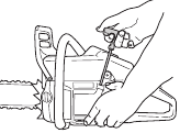 Check the chain tension every time you refuel. NOTE! A new chain has a running-in period during which you should check the tension more frequently.