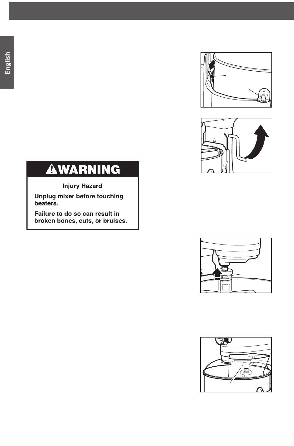 power. Lower bowl by rotating Bowl Lift Lever downward. Press beater