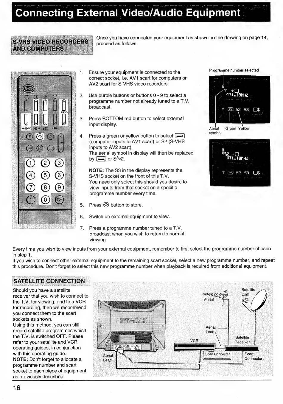 Every time you wish to view inputs from your external equipment, remember to first select the programme number chosen
