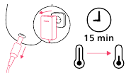| The applied part (attachment) can become hot during use <60°C. If this occurs, let the device cool down and limit the contact duration to less than 1 minute. |