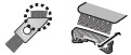 ![]() The charge status lamp ( ) glows red. | ![]() The charge status lamp ( ) turns off. | ![]() The charge status lamp ( ) will blink twice every second. |