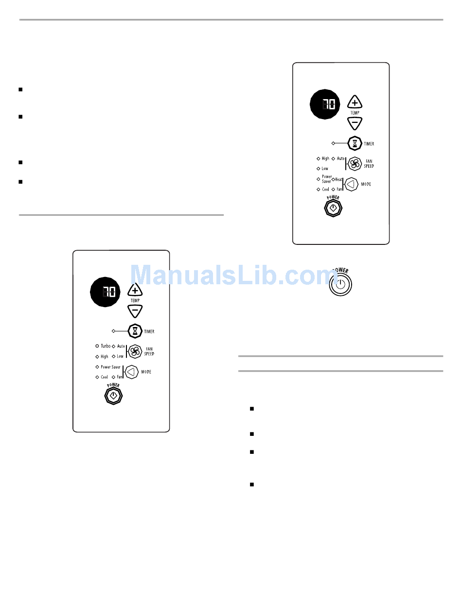 2. Choose COOL, FAN, HEAT (on some models) or POWER