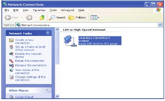 Go to Start > right click on My Network Places > select Properties > Right click on the Network Connection associated with the Ethernet adapter and select Properties (i.e., D-Link DFE-530TX+).