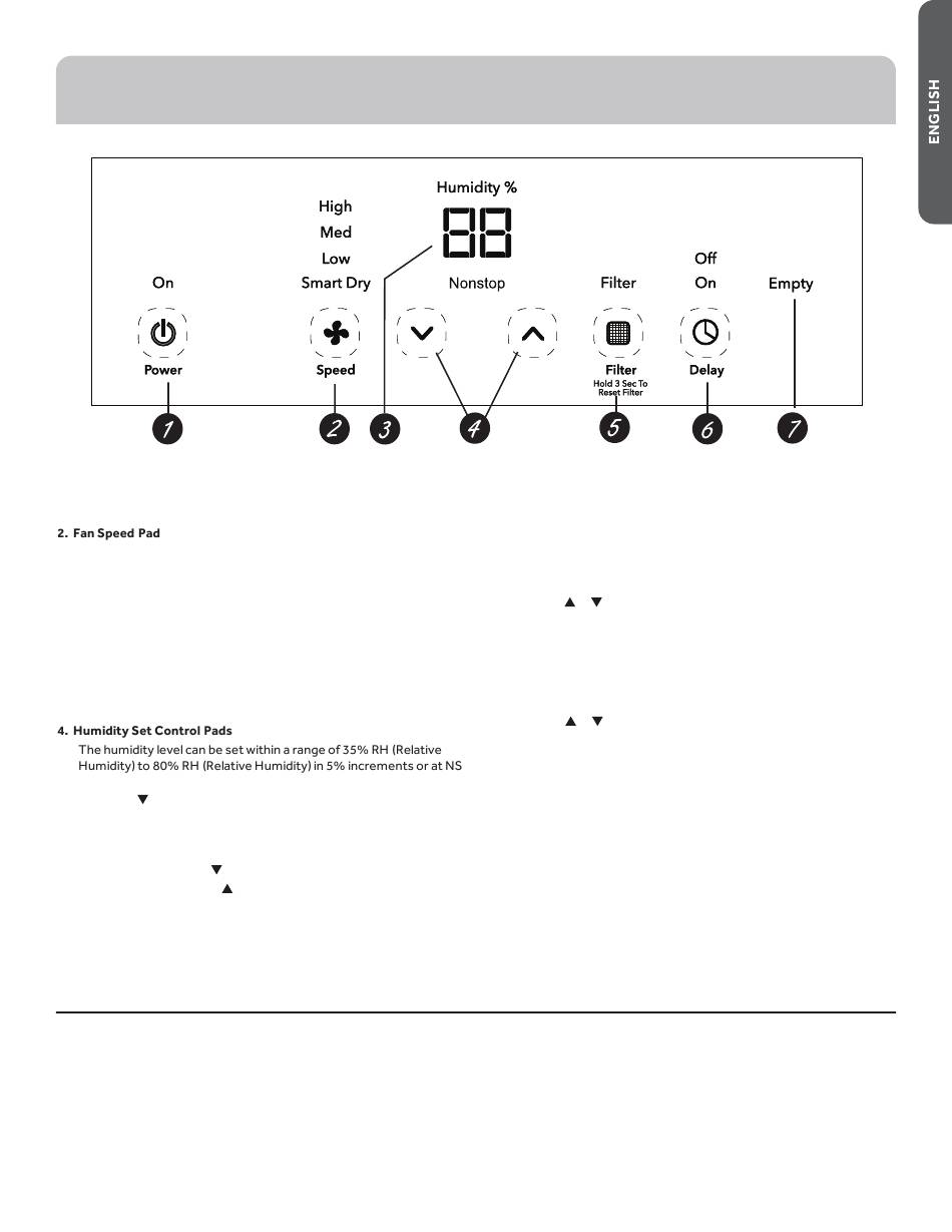 Press to turn the dehumidifier on and off.