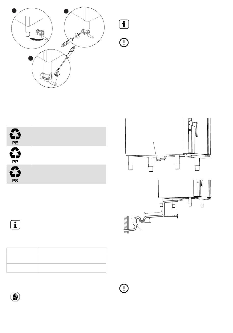 • The drain pipe must be siphoned (height 80 mm) to an open