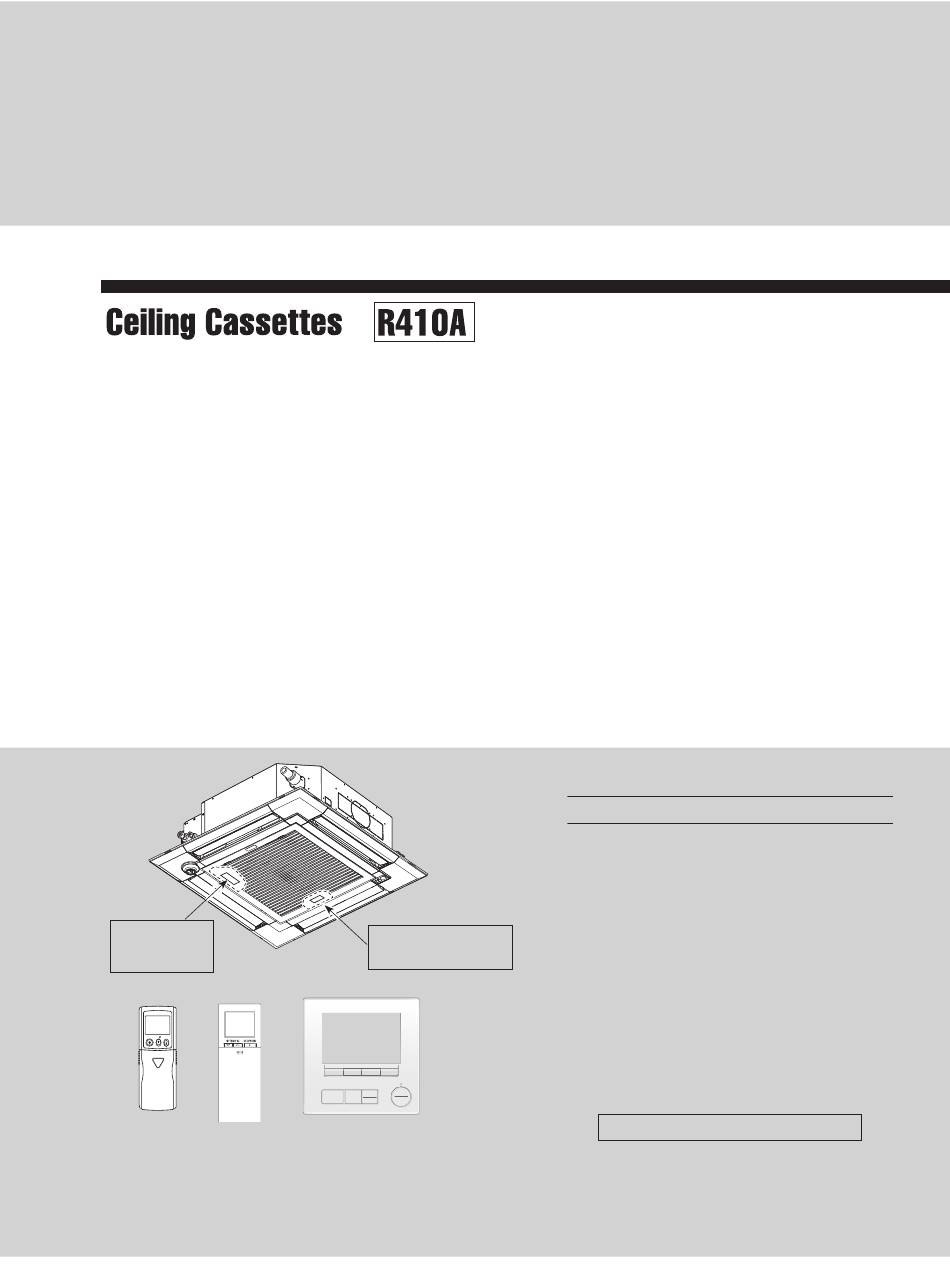 PARTS NAMES AND FUNCTIONS 3-1. INDOOR UNIT Drain pipe Air outlet Filter Liquid pipe Gas pipe Signal receiver i-see Sensor (Option) (Option) Model name indication for Model name MAIN UNIT Vane indication for GRILLE Air intake (Intake grille) TCHT008 TCHT008.indd 6 TCHT008.indd 6 9/12/2564 11:23:27 9/12/2564 11:23:27...