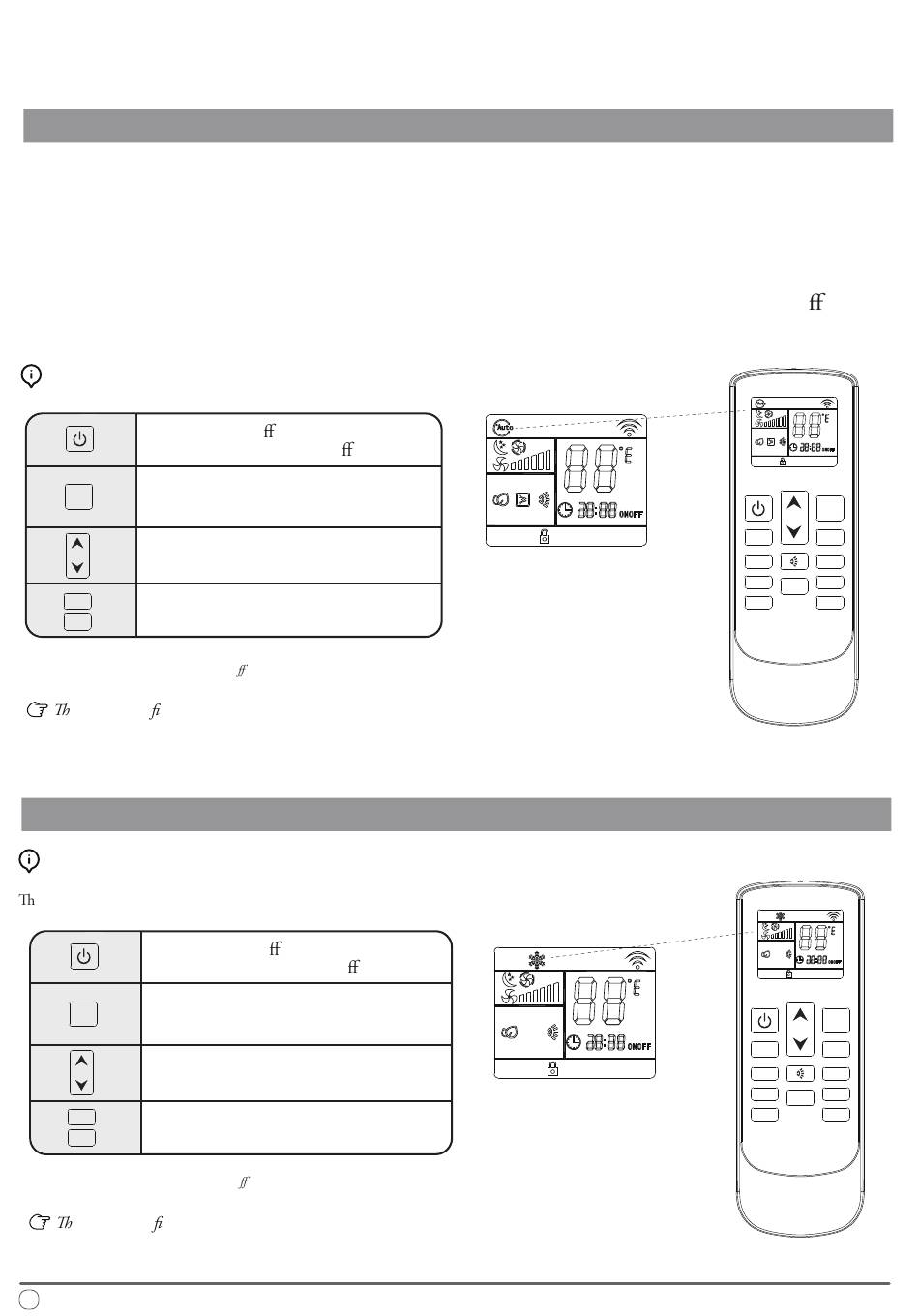 Note: Auto Fan speed is determined by the di erence between set and room temperature.