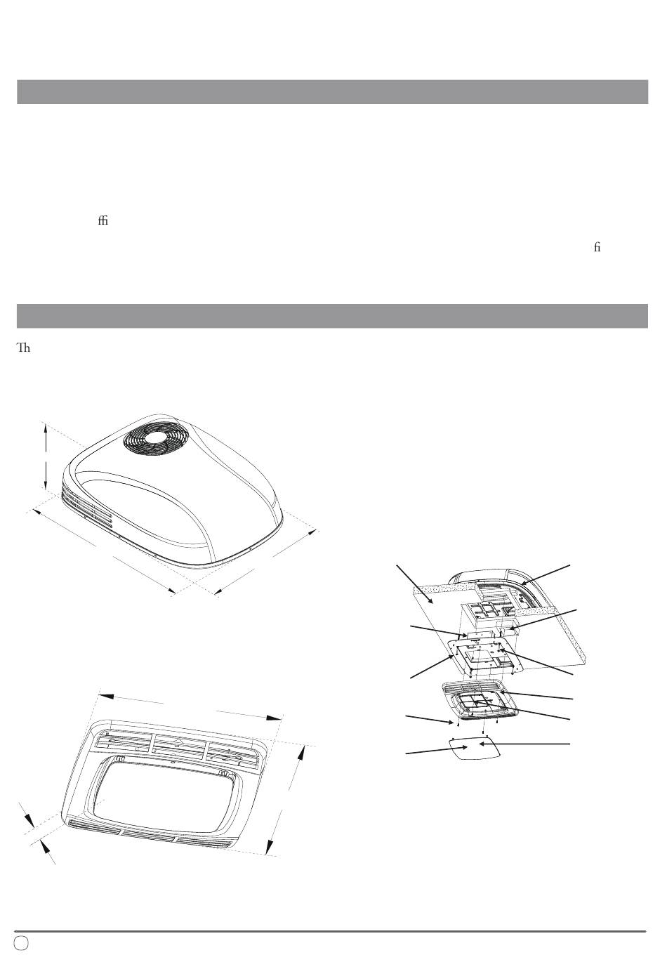 e overall dimensions of the RV rooftop heat pump system and panel are as follows: