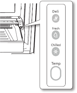 The Refrigerator temperature can be set between 7ºC and 1ºC to suit your particular needs. Press the Fridge button repeatedly until the desired temperature is shown in the temperature display. The temperature control process for the Fridge works just like the Freezer process. Press the Fridge button to set your desired temperature. After a few seconds, the Fridge will begin adjusting towards the newly set temperature. This will be reflected in the digital display.