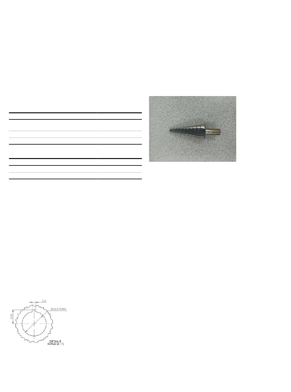 22 mm step drill to drill the central hole, followed by a manual